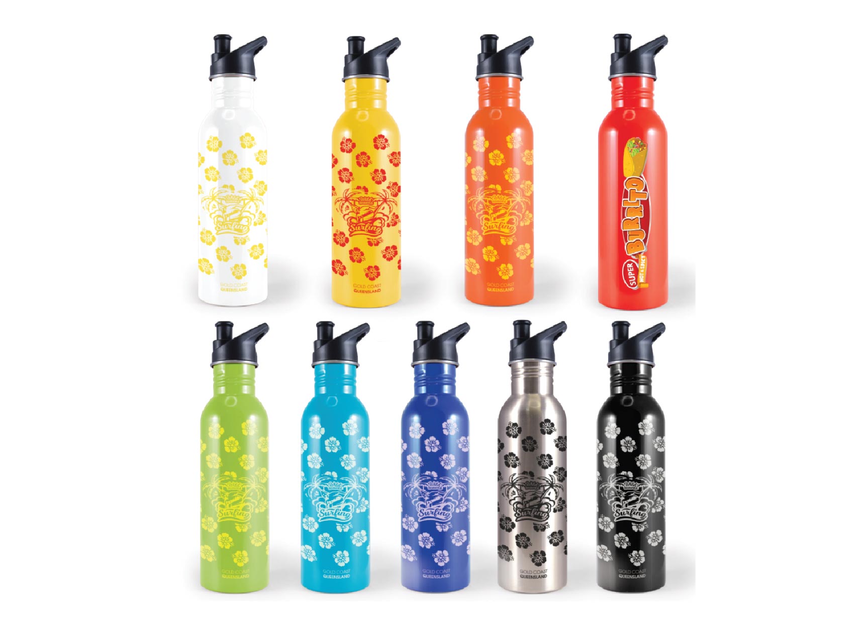 800ml lightweight stainless steel drink bottle with leak proof lid. Choice of 2 lid styles – Flip up with straw lid or sipper lid. Available in a bright range of fashion colours. This drink bottle is intended for cold use only, not suitable for carbonated liquids or freezing. For logo longevity hand washing is recommended.