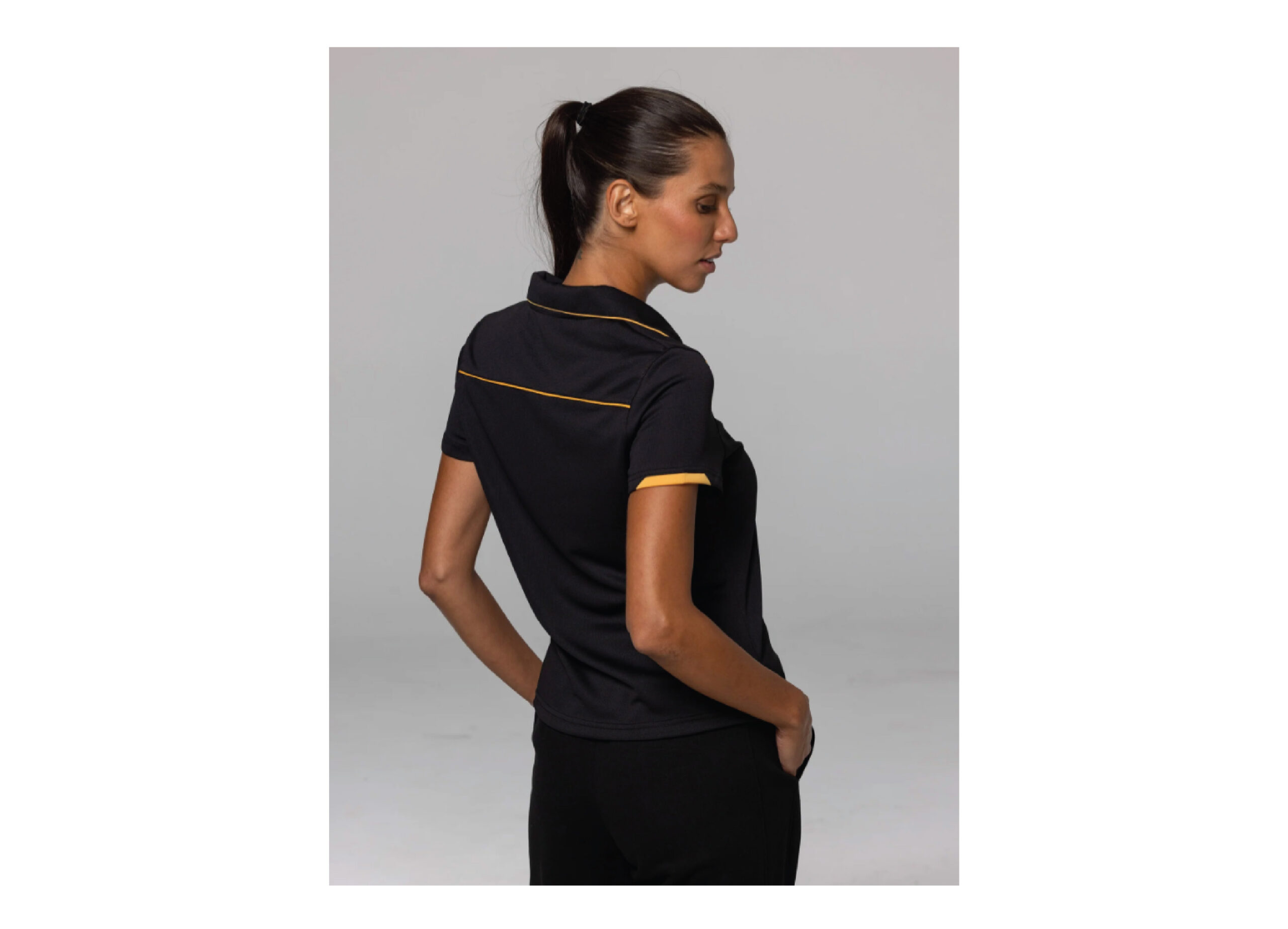 Contrast tape at inner comfort band & inner side splits