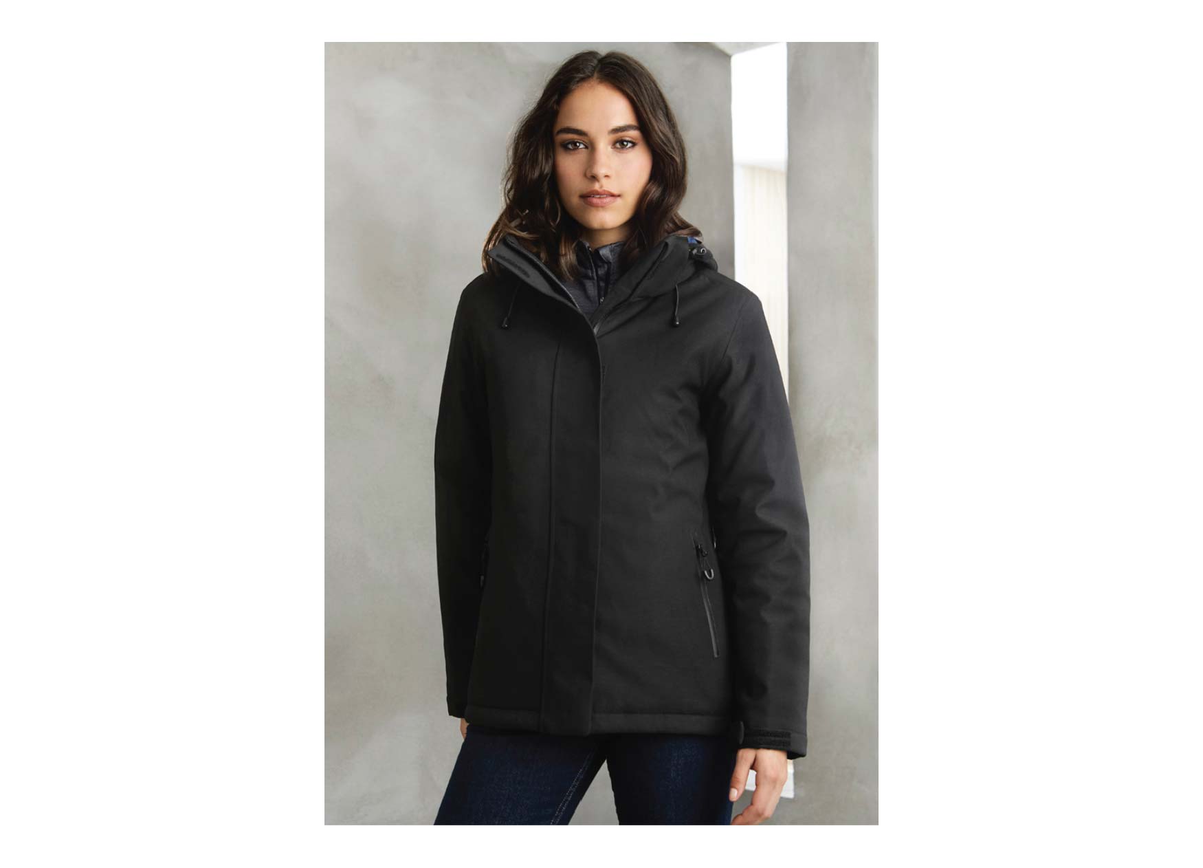 Outer: 100% Polyester Matte Melange Shell with Breathable TPU Membrane.