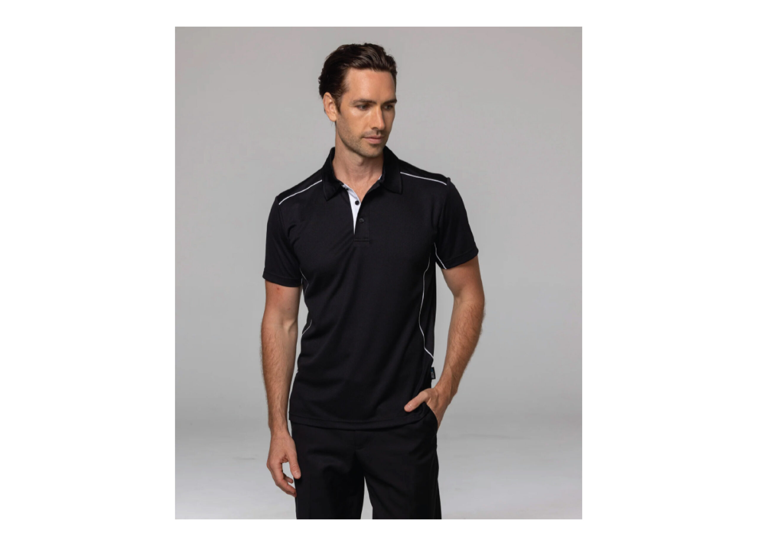 Set in sleeve polo with self fabric collar