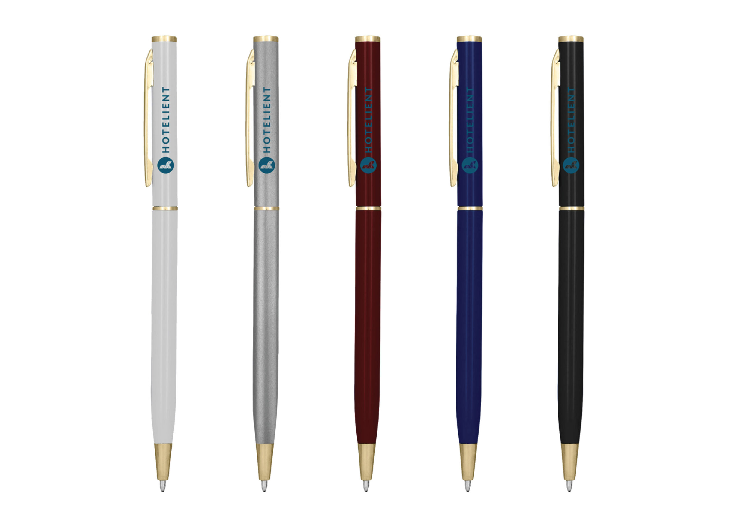 Quality, slimline aluminium metal pen with gold trim and twist action.