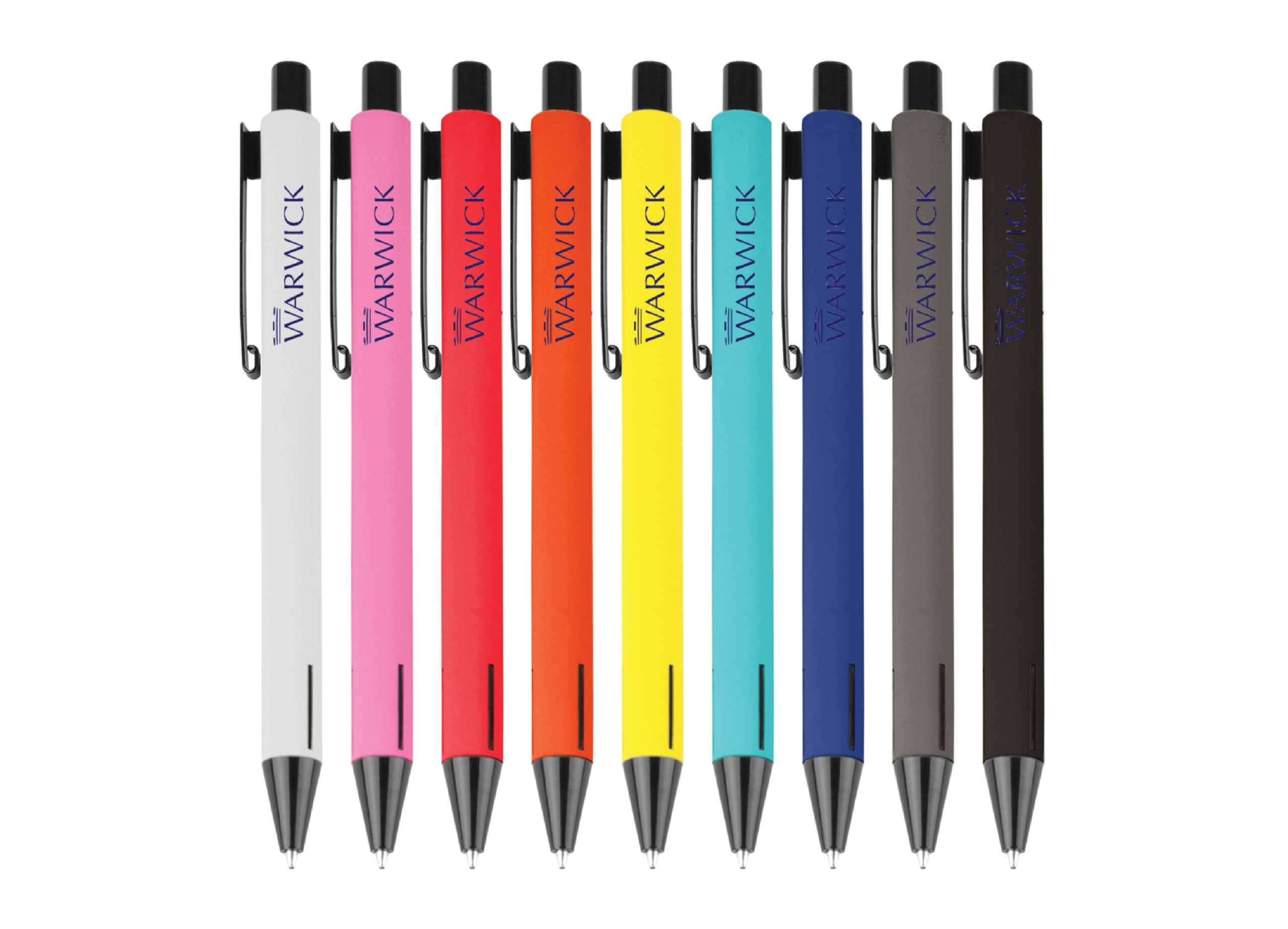 Soft-touch rubberised aluminium pen with retractable action.