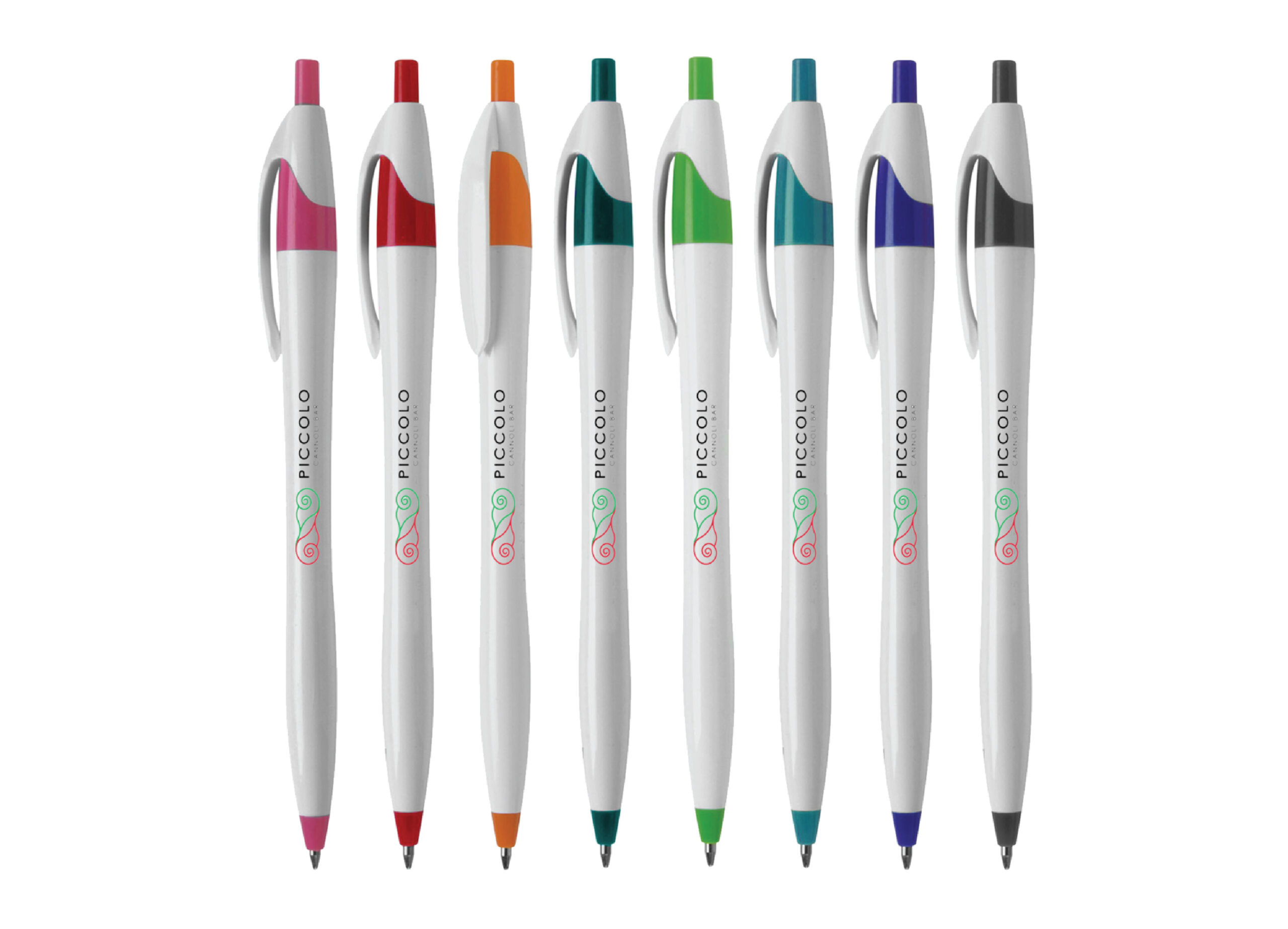 One of the most popular slim stylish plastic pens for promotions. Retractable pen with popular contoured design.